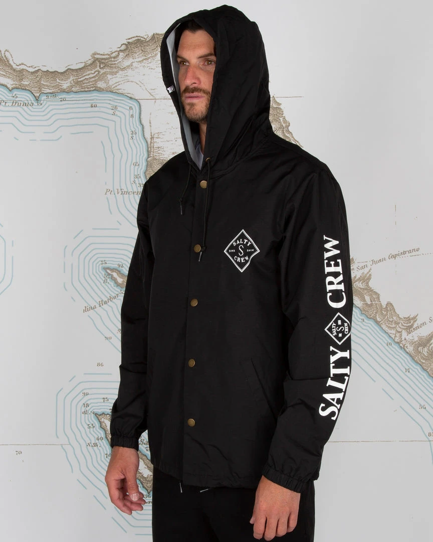 Snap buttons with drawcord hood.